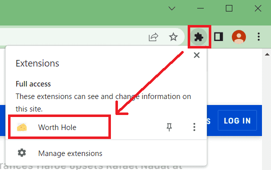 Click on the Worth Hole icon from the top right of your browser…
