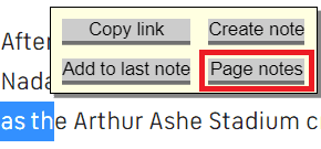 If you select an appropriate place on the page where the note is located and select “Page notes”…