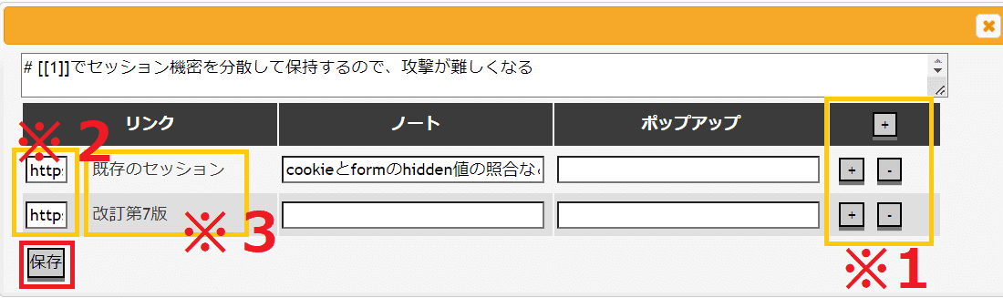 ※1 右側の「+」「-」ボタンで、リンクの追加削除ができる